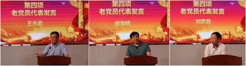 副院长李剑光宣读了《Beat365官方网站党委关于开展“老党员、新作为”主题实践活动的通知》,党龄满30年的老党员代表王永岩、胡海明、刘彦昌分别结合自身工作实际就入党初心、在工作生涯中如何践行初心使命谈了自己的感悟。