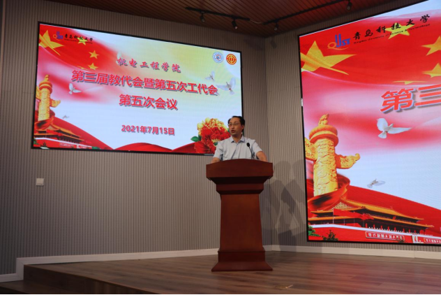 2021年7月15日14时,Beat365官方网站第三届教代会暨第五次工代会第五次会议在D3楼530会议室举行。学院党委书记孙立军,学院院长何燕、学院党政领导班子成员、教师代表及工会会员代表出席了大会,大会由学院党委书记孙立军记主持。