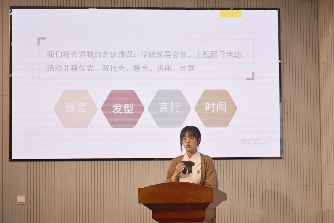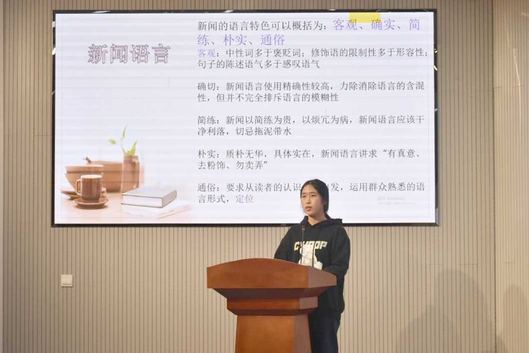 姜晓庆就新闻宣传的重要性展开介绍。她重点讲解了宣传报道的结构及写作技巧,从新闻写作知识的基本内容、校园新闻写作的步骤及投稿的注意事项等方面阐述了宣传报道的特点和撰写稿件的基本常识。同时,对于刚开始写作不知如何下手的问题,她结合自身的写作经验为同学们提供了切实可行的建议。最后,讲解了照片的拍摄技巧及对照片的要求。