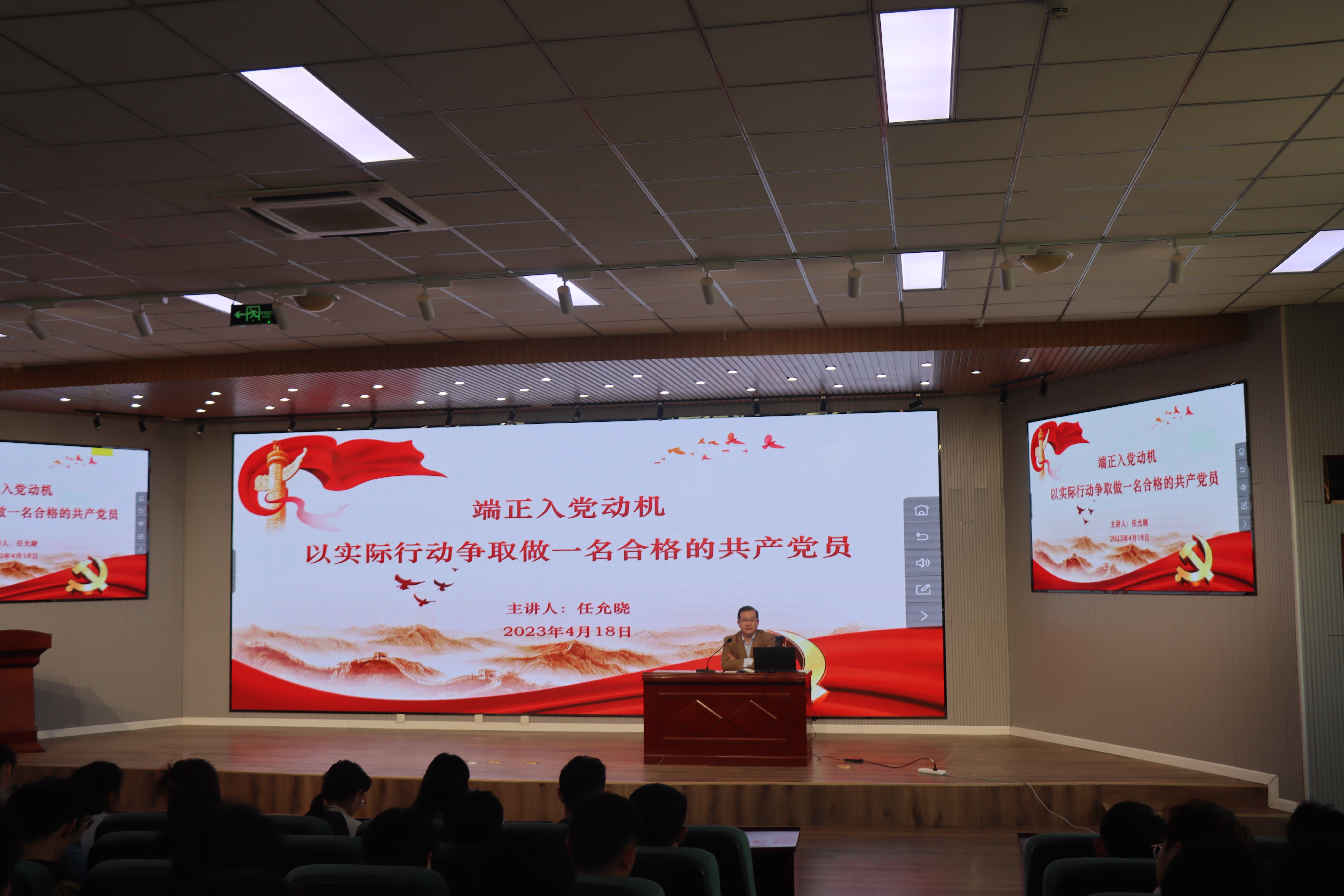 为了加强对入党积极分子的培训工作,深化党的思想引领,进一步提高入党积极分子的基础理论素养,4月18日,Beat365官方网站党委书记任允晓为学院2023年春季学期入党积极分子讲授了主题为“端正入党动机,以实际行动争取做一名合格的共产党员”的专题党课,214名学员参加了党课。