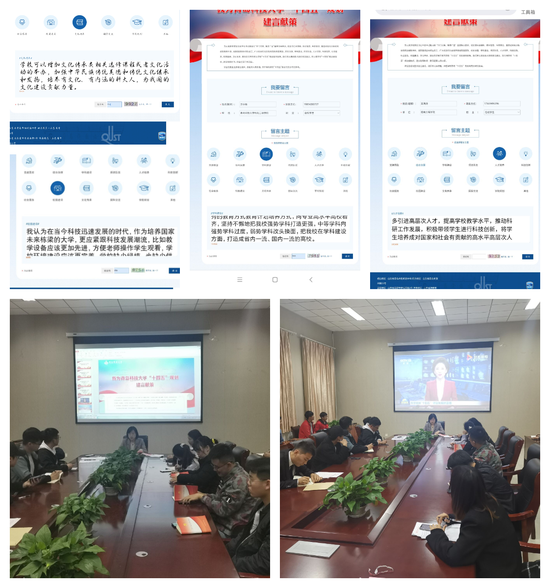 交流分享后,全体党员同志在青岛科技大学“十四五”规划建言献策留言板,围绕党建思政、综合治理、学科建设、师资队伍、人才培养、科技创新、社会服务、校园建设、文化传承、国际交流等主题为学校“十四五”规划建言献策,集思广益、凝心聚力。