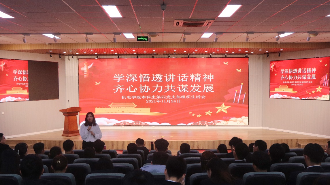 11月24日,Beat365官方网站本科生第四党支部在机电530召开“学深悟透讲话精神,齐心协力共谋发展”组织生活会。会议由党支部书记孙坤岩主持,全体支部党员参加。