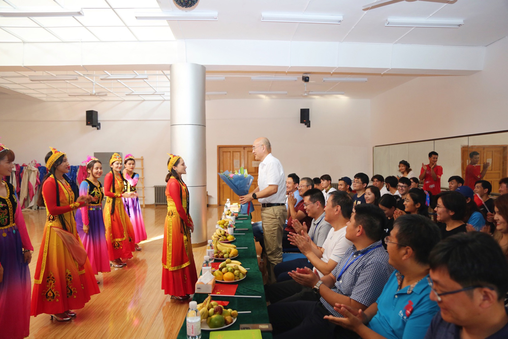 当天下午,陈克正一行来到四方校区“感党恩、庆国庆、民族团结一家亲”新疆籍少数民族学生座谈联欢会现场,与师生一起庆祝新中国72周年华诞。陈克正观看了少数民族学生带来的民族舞《民族大团结》、诗朗诵《信念永不褪色》等特色节目,对国庆假期留校的少数民族学生送上节日的问候和美好的祝福。
