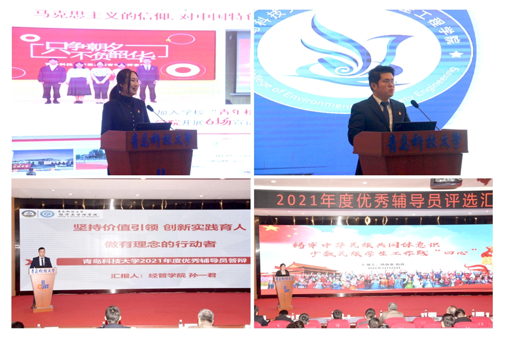 12月23日下午,学校召开2021年度优秀辅导员评选汇报会。党委常委、副校长丁林出席会议。各学院、校区27位优秀辅导员候选人结合今年学生工作开展情况分别进行了汇报。经校学生工作委员会成员,相关科室、中心负责人以及全体辅导员打分、评议,最终于洪芳等23名辅导员脱颖而出,获得青岛科技大学“2021年度优秀辅导员”荣誉称号。据悉,2021年学校着力打造矩阵化辅导员队伍建设体系,横纵加强6个辅导员年级工作组、7个辅导员工作室建设,选派200余人参加校外线上线下高层次学习培训,推进“两化四有”体系建设、辅导员“强基计划”,举办辅导员素质能力大赛、“加油星期五”辅导员沙龙、辅导员恳谈会等。1人获评教授,3人获评副教授,1人获教育部人文社科研究专项(高校辅导员),2人获山东省辅导员优秀工作案例一、二等奖各1项;4篇论文入选全省高校辅导员工作论坛,入选数量位居全省第二;5人获山东高校辅导员讲党史优秀短视频展示一、二等奖;数十名辅导员获批省市级课题立项,获奖数量、质量创历年新高。