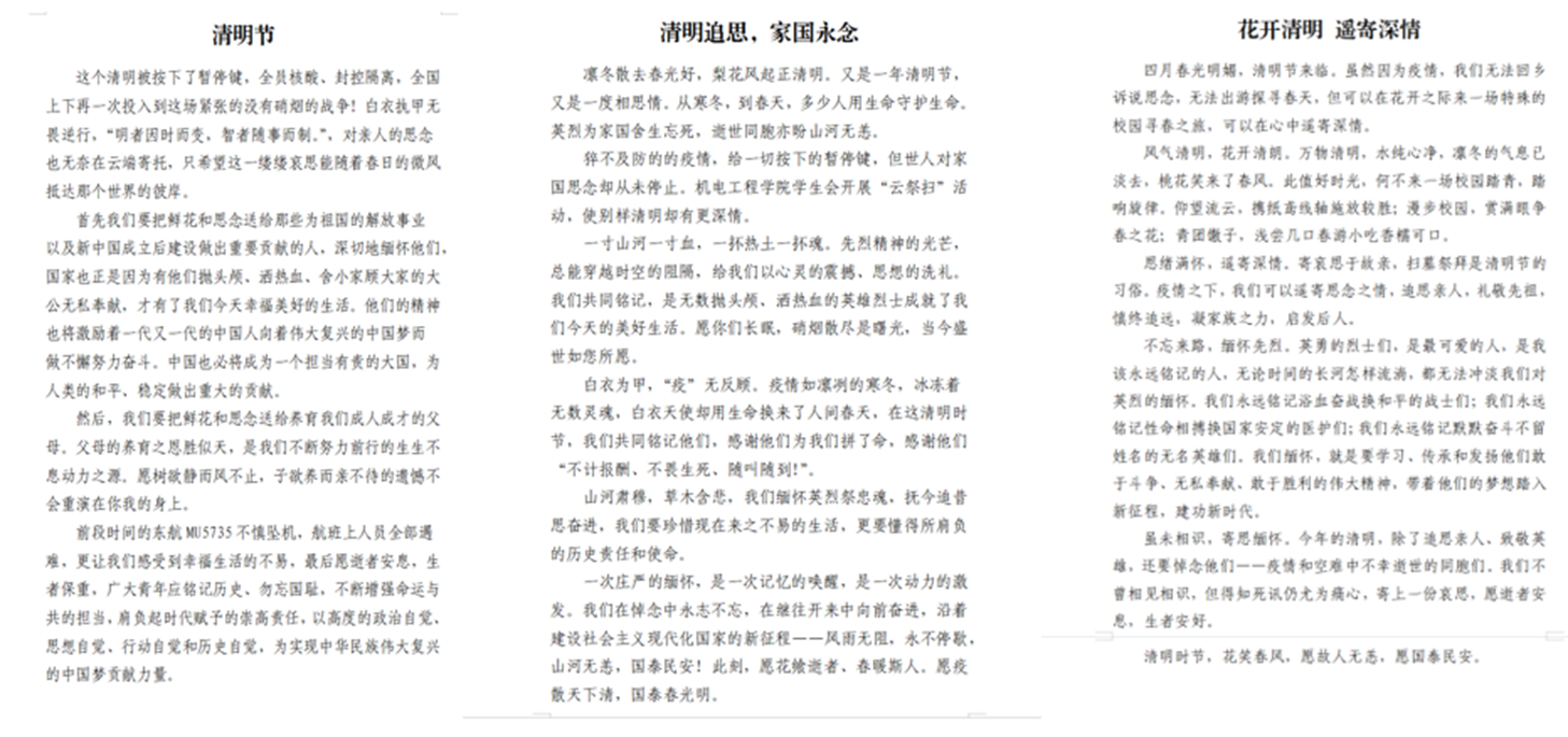 天地英雄气,千秋尚凛然——Beat365官方网站学生会开展“清明寄哀思”征文活动。组织学生们以笔寄情,与英烈对话,提高思想觉悟,坚定理想信念,汲取不畏强敌、不畏风险、敢于斗争、奋勇向前的勇气与力量。