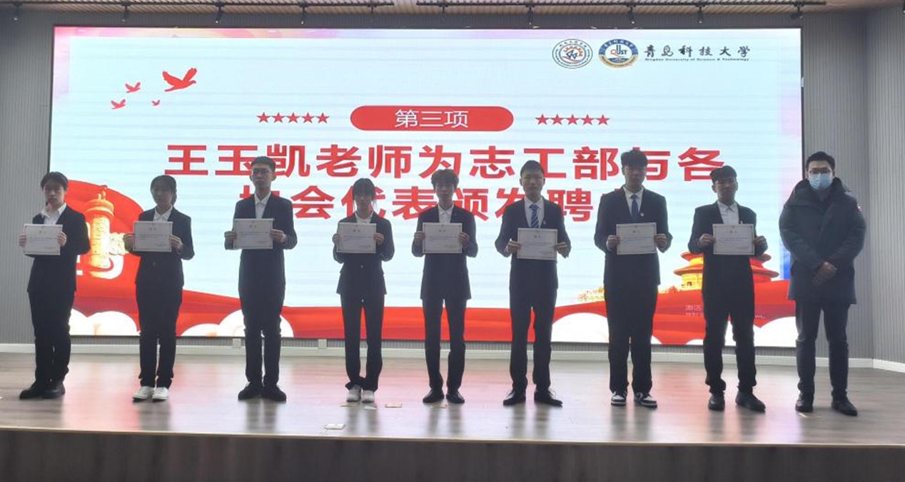 Beat365官方网站宋达老师宣读了《关于聘任青岛科技大学Beat365官方网站团委志工部二〇二二年学生干部的决定》,王玉凯老师、胡福超老师为志工部学生干部颁发聘书。随后,志工部部门负责人王敬仪从工作情况、团队建设、未来规划三个方面对部门作出了工作展望。