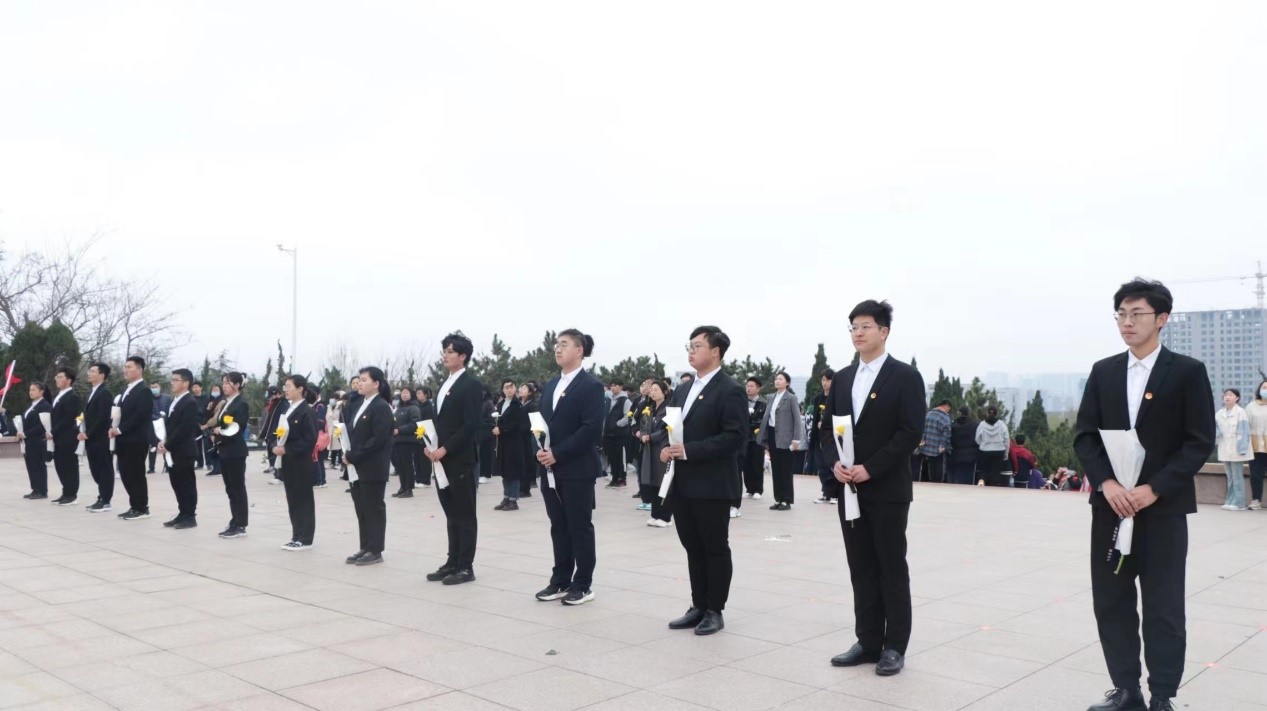 大家怀着敬仰的心情,在革命英雄纪念碑前举行了祭奠英烈仪式,全体成员手持黄白菊花,低头肃立,向为民族解放和人民革命事业英勇献身的革命先烈默哀,寄托对革命烈士的缅怀与哀思。