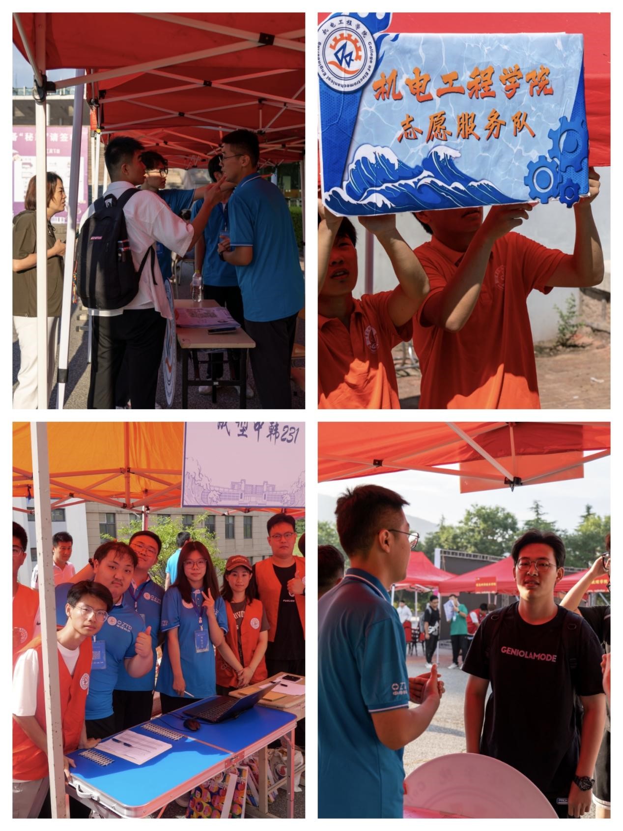 岗位众多,科学分配效率高。学院坚持守正创新,分工协同,热心服务,共设置科创展示工作、学院引导服务、校园文化宣传展示、党员先锋岗等职责明确的志愿者服务岗,为新生现场引导答疑。“同学你好,请问有什么需要帮助?”“来,把材料装好再走,别路上弄丢了……”“先别走,快来拿迎新大礼包……”“这边有照片墙,快来拍张照纪念一下”……学院的迎新志愿者奔走在校园的各个角落,为新生指引方向,协助新生搬运行李,帮助新生完成报到手续,全面推动志愿服务实现新提升。每一名志愿者用饱满的热情、踏实的行动和对志愿服务精神的坚守彰显了机电学子的青春风采,践行了新时代大学生的责任担当,用实际行动讲述着机电“志愿服务第一课”。