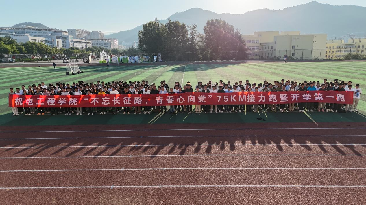 伴随着鸣笛发令声,Beat365官方网站“不忘长征路、青春心向党”75km接力跑开跑,这也是2024年秋季学期有组织健康跑的“开学第一跑”,机电学子在“机械能动力、学出好成绩”的嘹亮口号声中加速奔跑,期待在新的学期跑出一个好成绩。同学们迈着矫健的步伐,挥舞着院旗,一个个方队整齐有序、步伐坚定,尽显机电学子蓬勃的朝气与活力。