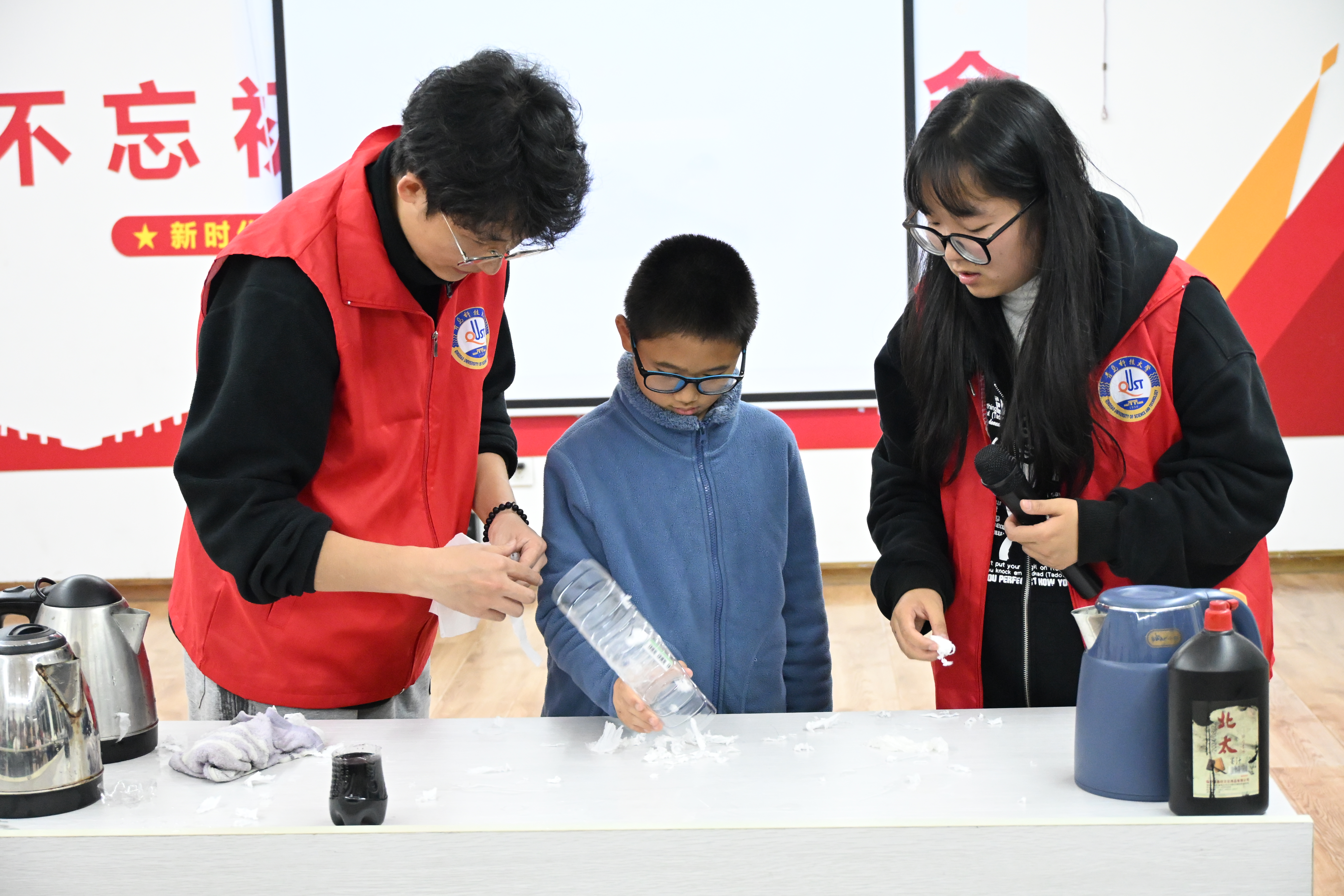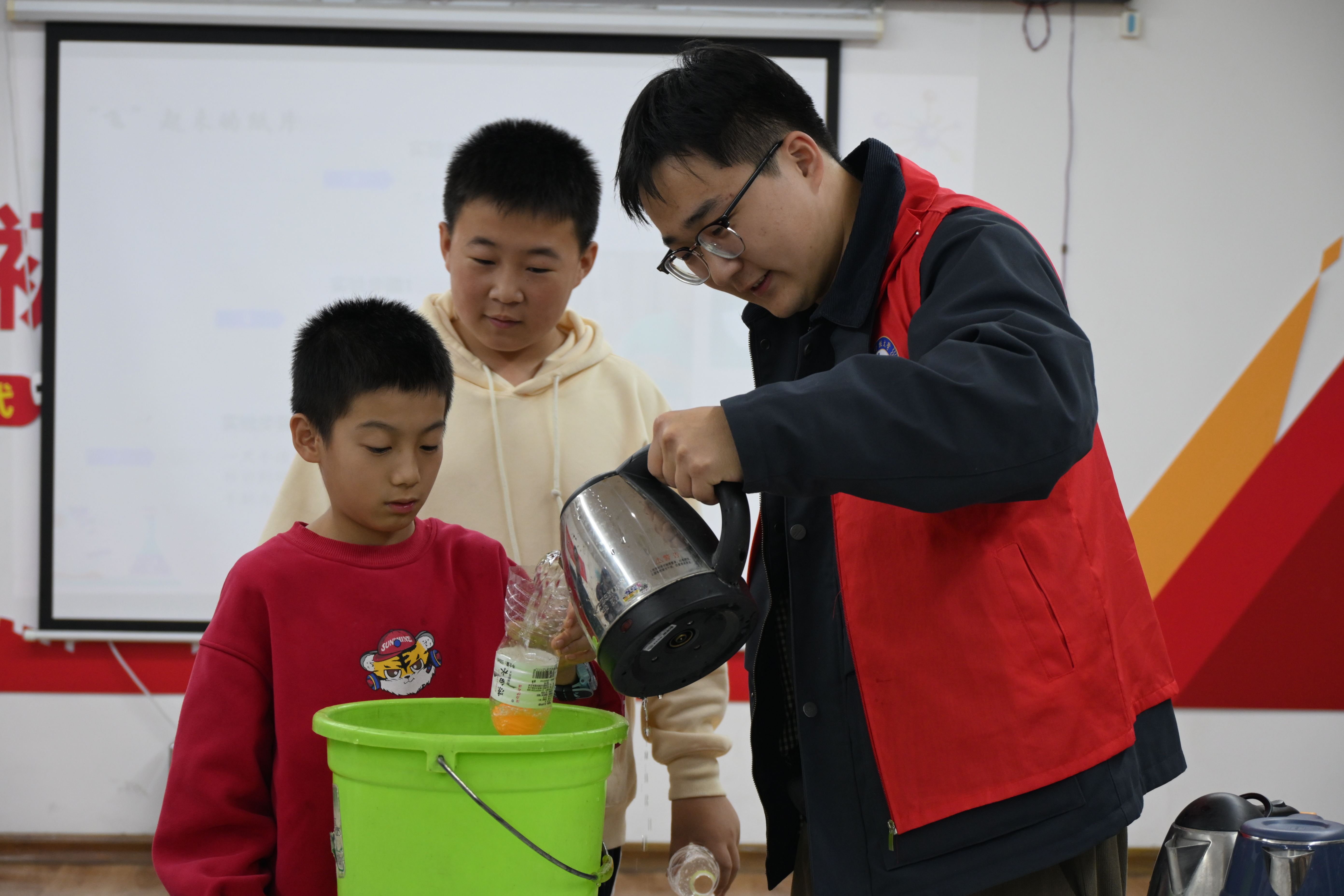在实际操作环节,志愿者们引导孩子们以小组合作的形式,亲手完成实验并认真记录每一个现象。沿着“观察-提问-验证”的探索路径,小朋友们不仅扎实掌握了知识要点,更亲身体验了科学探究的完整历程。活动接近尾声时,志愿者通过启发式提问带领大家回顾课程内容,孩子们积极响应、踊跃分享,现场洋溢着浓厚的互动氛围与学习热情。