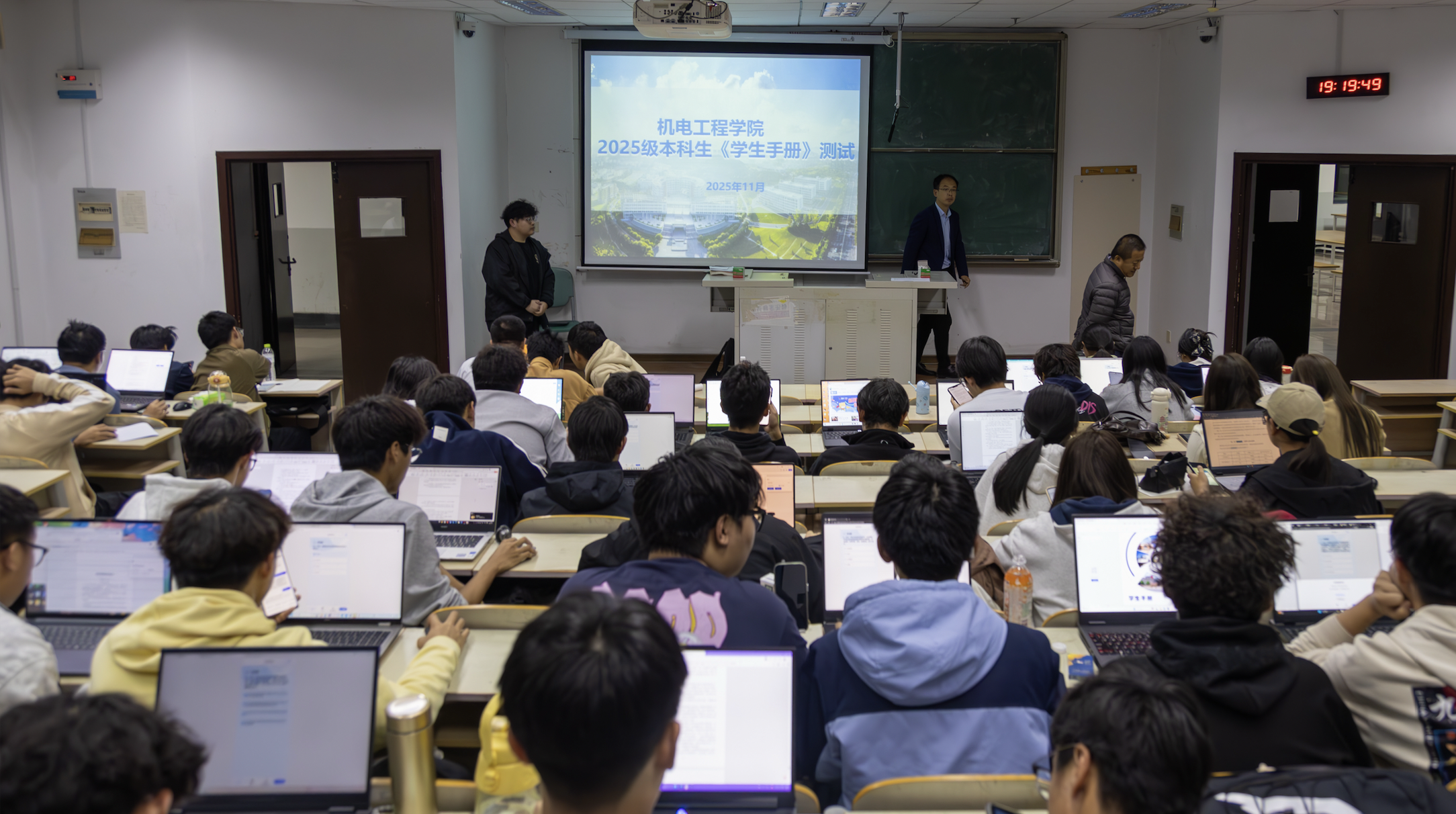 此次《学生手册》知识测试在各班晚自习教室统一进行。考试过程中,考场秩序井然,同学们沉着应考、认真作答,展现了2025级新生严谨务实的学习态度和积极向上的精神风貌。此次测试重点考查了学籍管理、考试纪律、宿舍管理规定、学生资助政策、评奖评优条件及学生违纪处理办法等与学生日常学习生活密切相关的规章制度。
