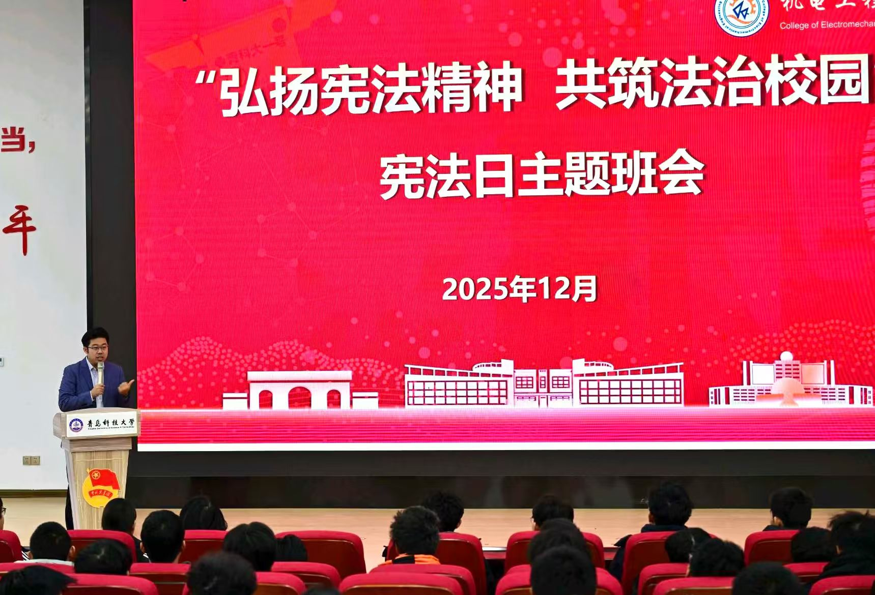 会上,学院团委副书记兼学工办副主任于超从“宪法保障大学生”切入,结合多个校园场景,为同学们解读宪法中公民的基本权利与义务内涵;同时,针对“网络言论边界”等大学生高度关注的问题,运用生动的语言,使抽象的条文变得可感可知。在互动环节中,“网上发表言论时,怎样避免触碰法律红线?”面对同学们的提问,于超耐心解答同学们的疑问。