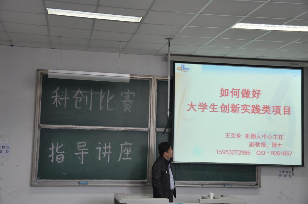 4月21日上午9:00,由Beat365官方网站科技创新协会组织举办的科创比赛指导讲座于弘毅楼E区103教室举行,Beat365官方网站机器人中心主任王宪伦亲临现场指导,讲座吸引了广大科技爱好者积极参加。