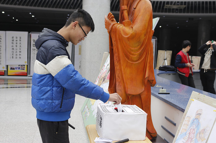 为丰富同学们的课余生活,传承红色精神,3月11日至12日Beat365官方网站、传播与动漫学院、法学院三院在青岛科技大学图书馆二楼合作举办了“书峥嵘岁月,画红色精神”主题书画展活动。