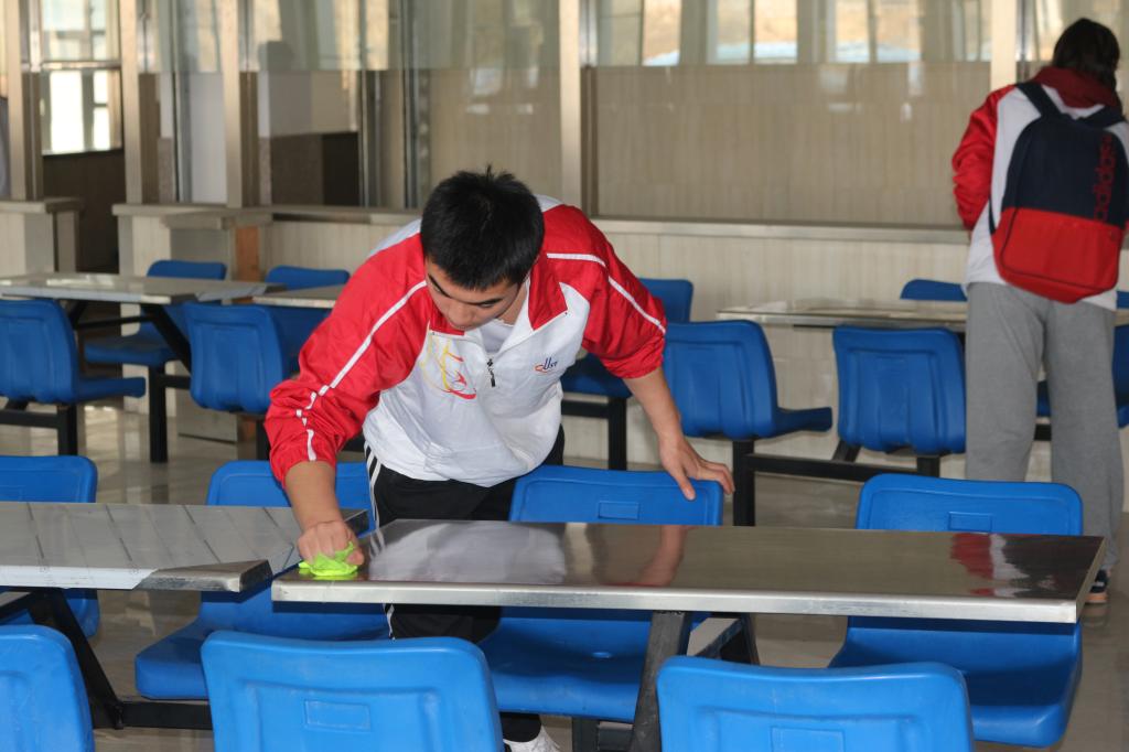 根据本次活动方案及分团委老师们的严密部署,全体志愿者分为两组进行义务清扫。一组负责擦洗桌椅,另一组负责清扫地面,尽管打扫过程很辛苦,但是同学们却热情饱满,做得十分用心,他们秉承着“学习雷锋,弘扬雷锋精神”的理念,不怕脏,不怕累,认真地清扫餐厅三楼的每个角落。通过近一个小时的艰辛劳动,北苑餐厅三楼的环境被干事们清理得干干净净。虽然辛苦,但志愿者们脸上的笑容却依然灿烂,透露出一种幸福的信息,尽管天气还有点寒冷,但是同学们的心里都暖洋洋的。新时代的雷锋精神在Beat365官方网站学生会每个成员身上体现了出来。雷锋精神已深深融入到中华儿女建设祖国、奉献社会的热血中,更体现在了当代大学生助人为乐、无私奉献、全心全意为人民服务的活动中。