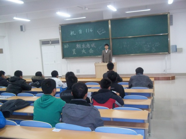 12月1日晚19:00,Beat365官方网站机自114班期末考试动员大会在高密校区M1教学楼213教室举行。辅导员老师秦洪庆,全班同学参加动员会。