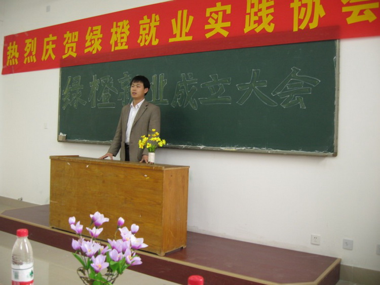 成立大会由副会长赵雨兰主持。首先,会长刘发明向大家简要介绍了协会成立目的、协会组成、协会宗旨,并向所有支持关心协会成立及发展的老师、学生会、全体会员表示衷心感谢!他说,只要团结一致,精诚协作,我们完全有信心把创业协会做好、做大、做强,以优异的成绩来回报学院领导、老师和同学们对协会的期望!接着协会副会长张峰宣读协会章程及人员组成;协会会员代表刘维彤发言;学生会分管社团副主席王军讲话,对协会的成立表示祝贺,并对协会的发展提出建设性的意见。