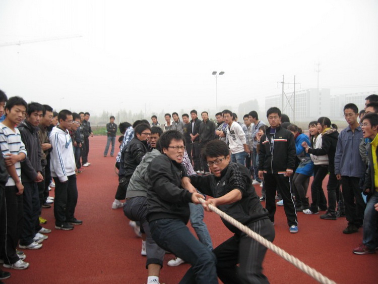 为了丰富同学们的课余文化生活,提高同学们的团结意识,培养同学们努力拼搏、坚忍不拔的体育精神,同时充分展示Beat365官方网站学生风采。11月4日-5日,由Beat365官方网站学生会纪检部主办的Beat365官方网站年级拔河比赛在高密校区举行,Beat365官方网站2011级全体同学参加此次比赛,分团委老师秦洪庆现场观看比赛。此次比赛以班级为单位,每个班各选十五名选手参加比赛,比赛采取三局两胜的方式。