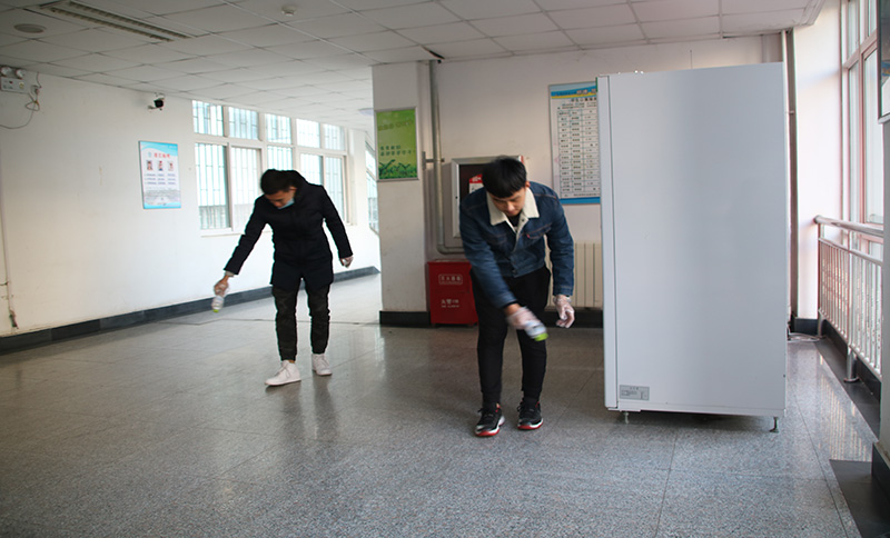 活动伊始,王笑东对消毒工作进行了任务分解和工作安排,向大家分发消毒工具,并详细讲解消毒要领。随后,各小组人员分头对各自负责的宿舍楼展开消毒。消毒过程中,消毒人员对宿舍楼楼道以及各宿舍内的卫生死角、细菌容易滋生的地方进行了认真的消毒。同时提醒同学们多开窗通风,保证空气流通,养成良好的生活习惯,提醒同学们收好自己的个人用品以避免受到消毒水的影响。最终,消毒工作在同学们的积极配合下顺利完成。