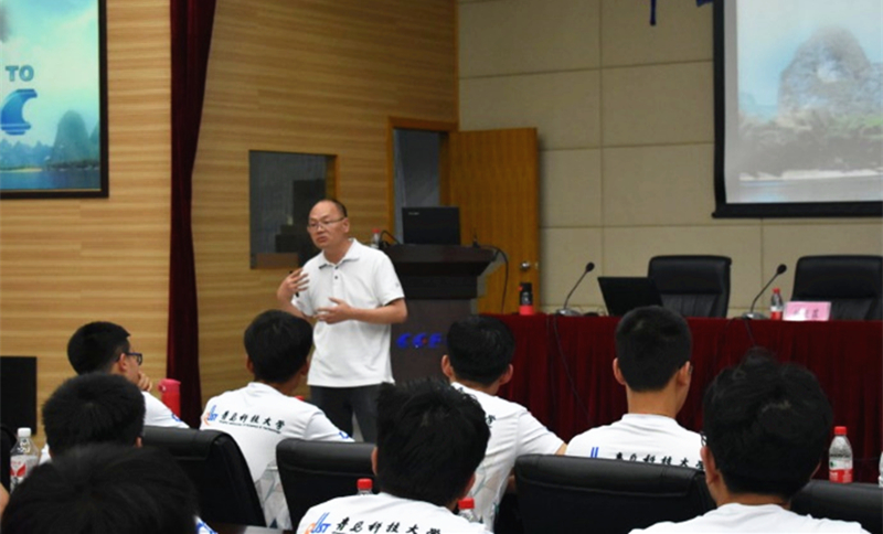 下午学习交流会,周升平经理就轮胎行业装备,有限元分析和仿真以及如何成为设计师等方面为同学们讲解了行业领域知识,从自身的工作经历向同学们传授经验,针对同学们的提问进行详细解答,祝福同学们学有所成,一路顺风。实践团成员认真思考,聚精会神,抓住这次难得的的机会,认真听取老师们的讲解。在讲课的最后阶段,还邀请到了青岛科技大学Beat365官方网站2014级毕业生黄宏涛分享自己加入公司后的生活与学习经验。