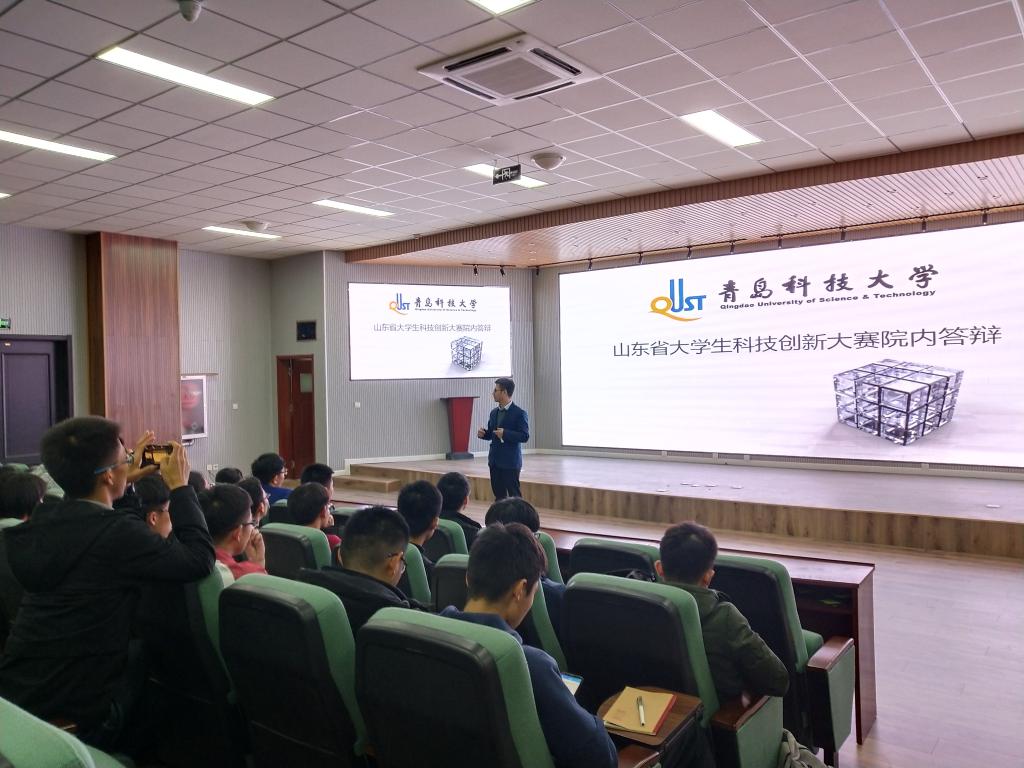 为助力Beat365官方网站“双创”工作,备战第五届山东省大学生科技创新大赛决赛,11月29日,Beat365官方网站分团委科创部在机电楼D3-530会议室举行了第五届山东省大学生科技创新大赛模拟答辩。Beat365官方网站分团委曲智强老师、具有丰富参赛经验的王敏等六位同学以及科创部全体成员参加活动。