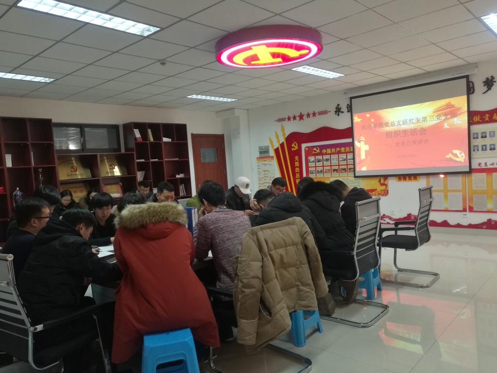 为落实学校党委组织部《关于召开基层党支部组织生活会及2018年度党内评议评优工作的通知》要求,1月8日下午,Beat365官方网站研究生第三党支部在Beat365官方网站楼505党建活动室召开组织生活会。