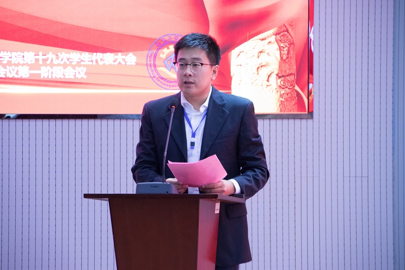 在第十九次学生代表大会第一次全体代表大会第二阶段会议上,毕岚森代表Beat365官方网站第十八届学生委员会作了工作报告。