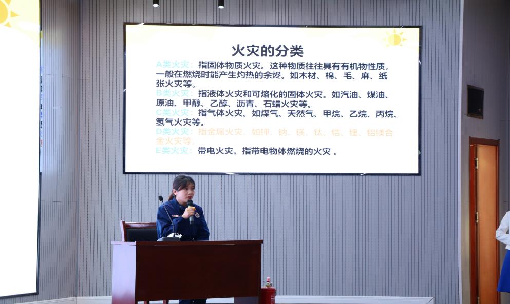 志工部部长胡福超老师向同学们着重强调了校园消防安全的重要性,并叮嘱同学们要提高宿舍消防安全意识。消防员韩雨凌老师就火灾常识、逃生自救、学校火灾原因和预防三方面为同学们展开宣讲,从常识入手,进一步向同学们介绍火灾的类型和发展过程,从而引出身处险情时正确的逃生方法。通过实际案例让同学们更能意识到校园火灾的严重性。同时,消防员老师们还为参会同学下发了校园消防手册,使同学们对消防知识有了进一步的认知。