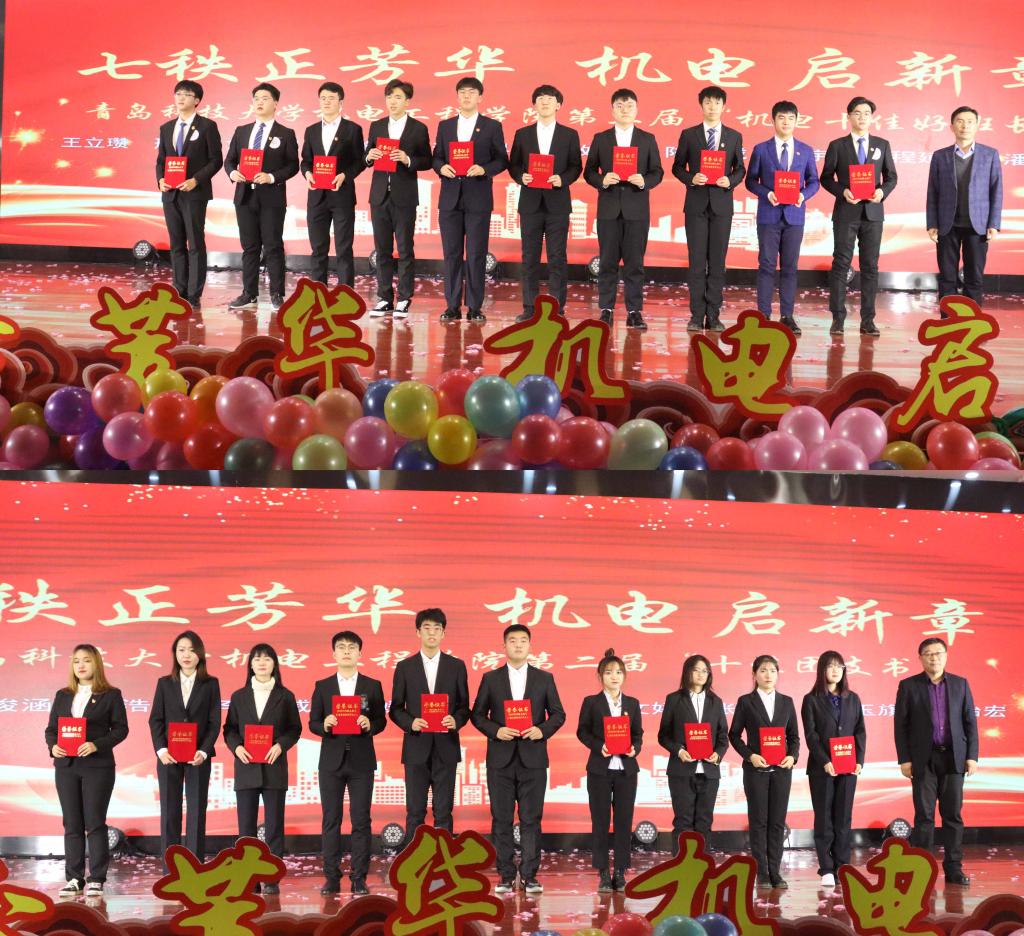 典礼表彰了机电学子在学风建设、科技创新、志愿服务等方面取得的傲人成绩;肖强和王作辉分别为Beat365官方网站“十佳好班长”和“十佳团支书”获得者颁奖,并鼓励学生坚定理想信念,不断开拓创新。