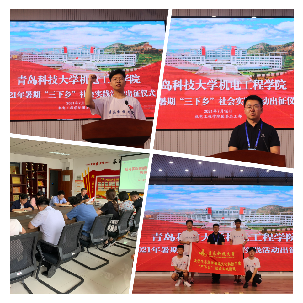 为落实团中央、校团委《关于开展2021年全国大中专学生志愿者暑期文化科技卫生“三下乡”社会实践活动的通知》要求,开展“永远跟党走,奋进新时代”主题教育活动。7月16日下午,Beat365官方网站召开2021年大学生暑期“三下乡”社会实践活动出征仪式。