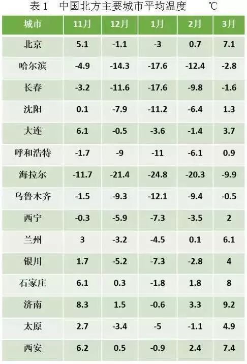 2、中国北方低温时间长